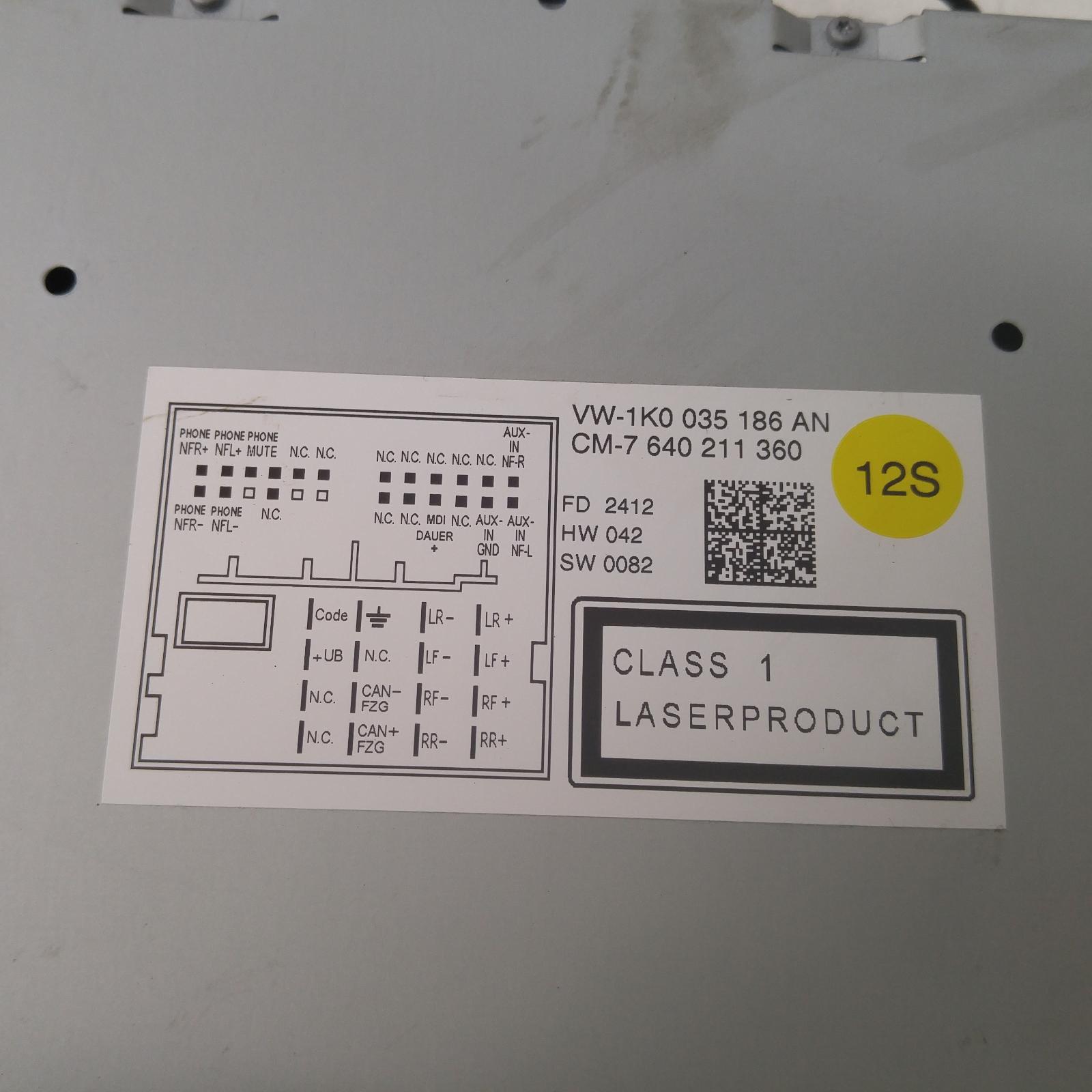 Golf Stereo/head Unit 2008-2016 single disc cd player (rcd310),gen 6,12/08-01/16 00011998 #272982