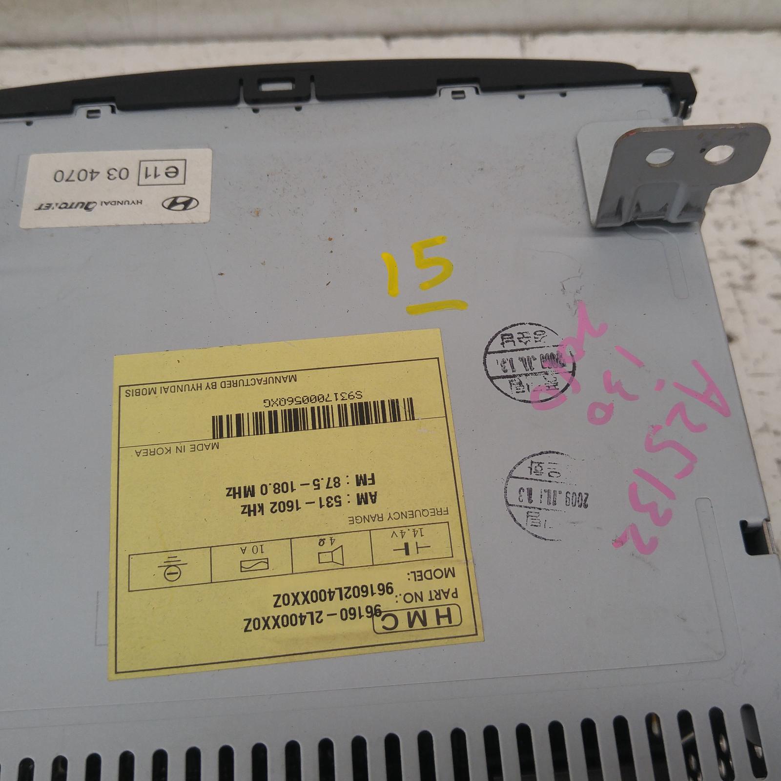 I30 Stereo/head Unit 2007-2012 mp3/wma/aux/cd player,non bluetooth type,single disc player,fd,09/07-04/12 partwh #366103