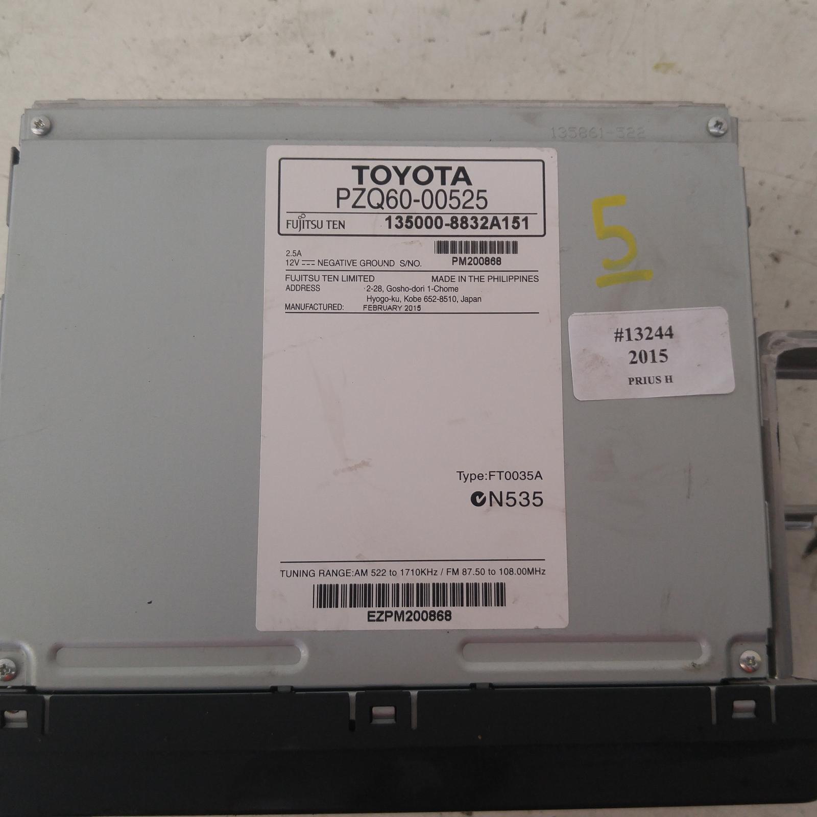 Prius Stereo/head Unit 2011-2020 nhp10,prius c,radio/cd player,12/11- 00013244 #352264
